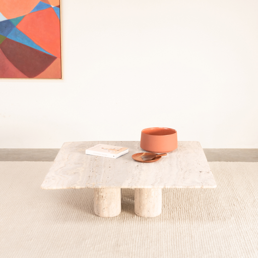 Quadratischer Couchtisch - Lyon - Low - Weißer Travertin