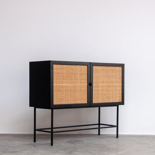 Aufbewahrungsschrank - Comino - Schwarz/Naturrattan