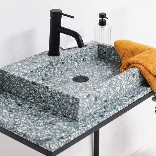 George Marmorwaschbecken mit Hahnloch – Grüner Terrazzo