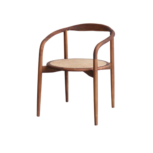 The Ely Dining Chair in dark walnut is a refined addition to any dining or living space. With its elegant round rattan seat and durable acacia wood...