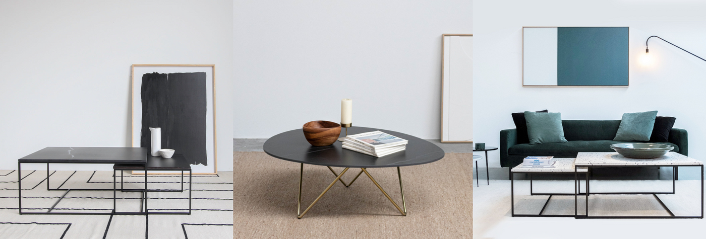 Different shapes and sizes in ceramic coffee tables