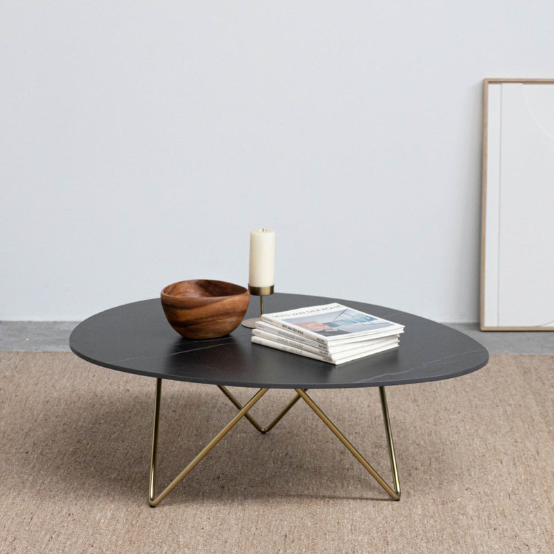 Furnified offers different shapes and sizes of ceramic coffee tables. Our most popular shape is the organic shape of the Richard coffee table. Rounder shapes create a cozy and peaceful atmosphere in your living room. We also have rectangular and square coffee tables in our range.