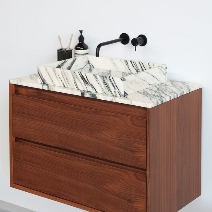 Bathroom Set Walnut Ann - Blue/White Marble - 80 cm
