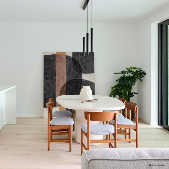 Dining tables with an organic shape steal the show in interior design. From Wabi-Sabi to Japandi, to a combination with vintage, the organic shapes can find a place in any interior. Thanks to microskin, the table looks both tough, robust, and elegant.