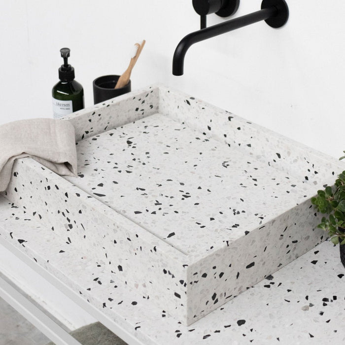 The terrazzo used in the sinks is white terrazzo. Want to know more about marble maintenance? Read it on our blog .