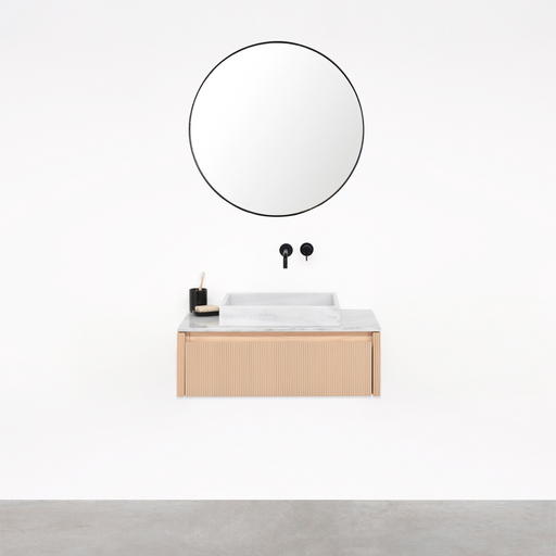 Mueble de baño Roble - Ahun - George White Marble - Placa superior Marcel mármol blanco - 80 cm