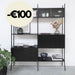 - Consta de 4 estantes, 1 mueble bar con puerta plegable, 1 armario de almacenamiento y 1 vitrina con puertas correderas de cristal.