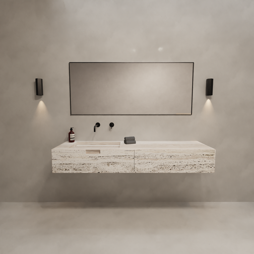 Mueble lavabo Loudun - Travertino blanco - Lavabo simple - 170 cm
