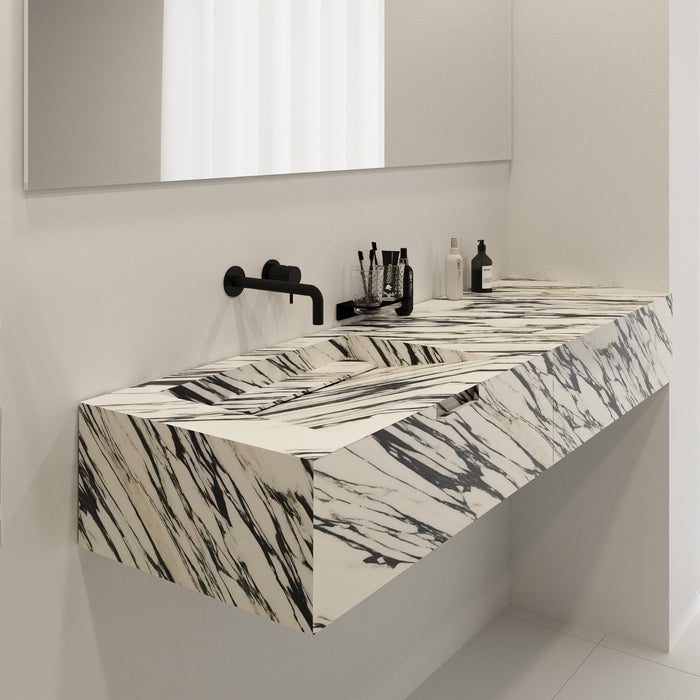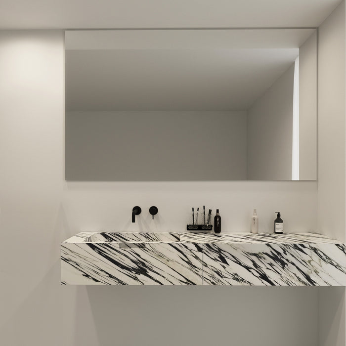 Nuestro armario de baño Loudun en mármol blanco azul con un solo lavabo combina lujo y funcionalidad de manera perfecta. Con un ancho generoso de 170 cm y un lavabo en el lado izquierdo, este armario ofrece amplias opciones de almacenamiento, tanto en los cajones como en la encimera.