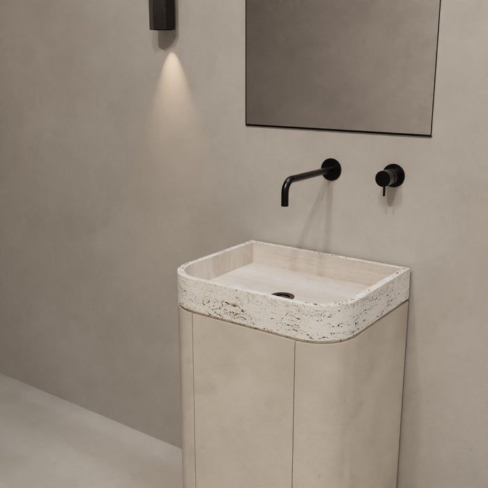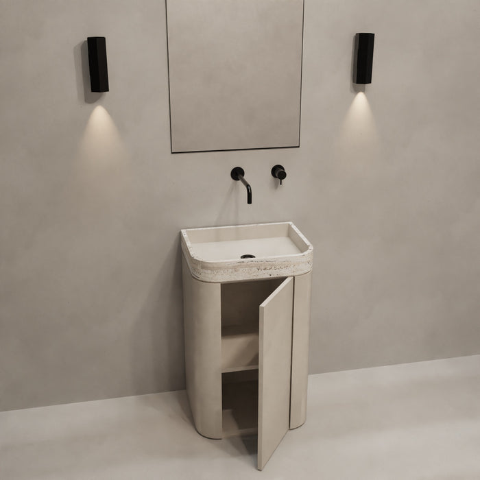 Mortexlook handenwasser - Lavabo de travertino blanco - Marceau - Con estantes