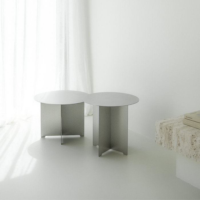 Al igual que su contraparte más grande, esta mesa está fabricada con acero cepillado de alta calidad. La textura mate y refinada le da un aspecto moderno y a la vez atemporal. El acero cepillado no solo es visualmente impactante, sino también duradero y fácil de mantener. Una elección perfecta para quienes aman el estilo sin preocupaciones.