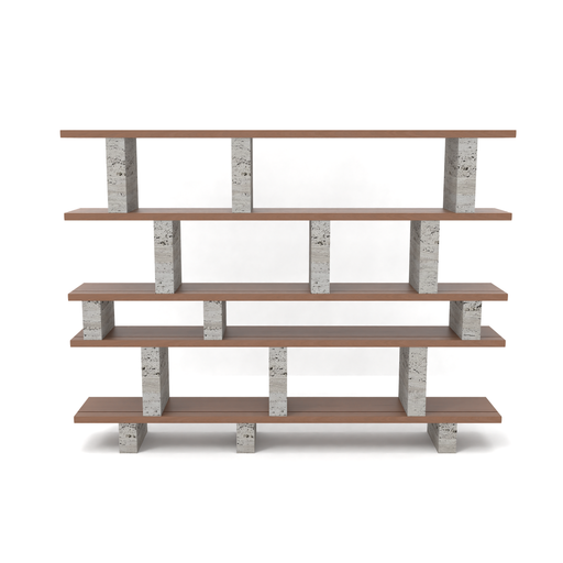 Estante de pared Merpins - madera ahumada - Pilares de travertino gris - 240 cm