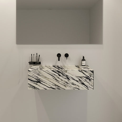 En stockCe meuble flottant industriel et minimaliste deviendra le point de mire de chaque salle de bain ! Type Marbre Le type de marbre utilis&eacut...