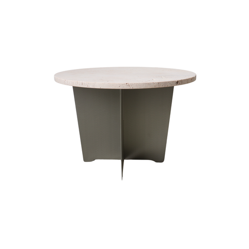 Table basse ronde Bonzac - 90 cm - Acier inoxydable - Travertin blanc - Non rempli