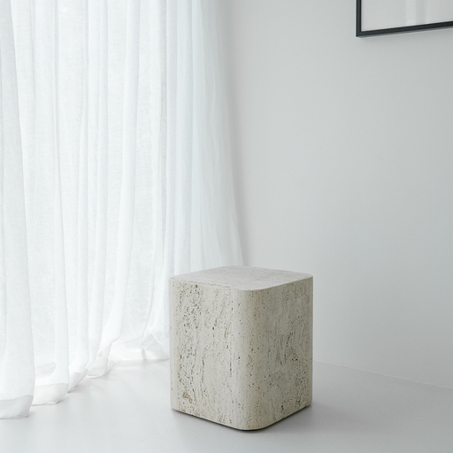 Table basse carrée Travertin - Alba - 40 cm - Bord arrondi