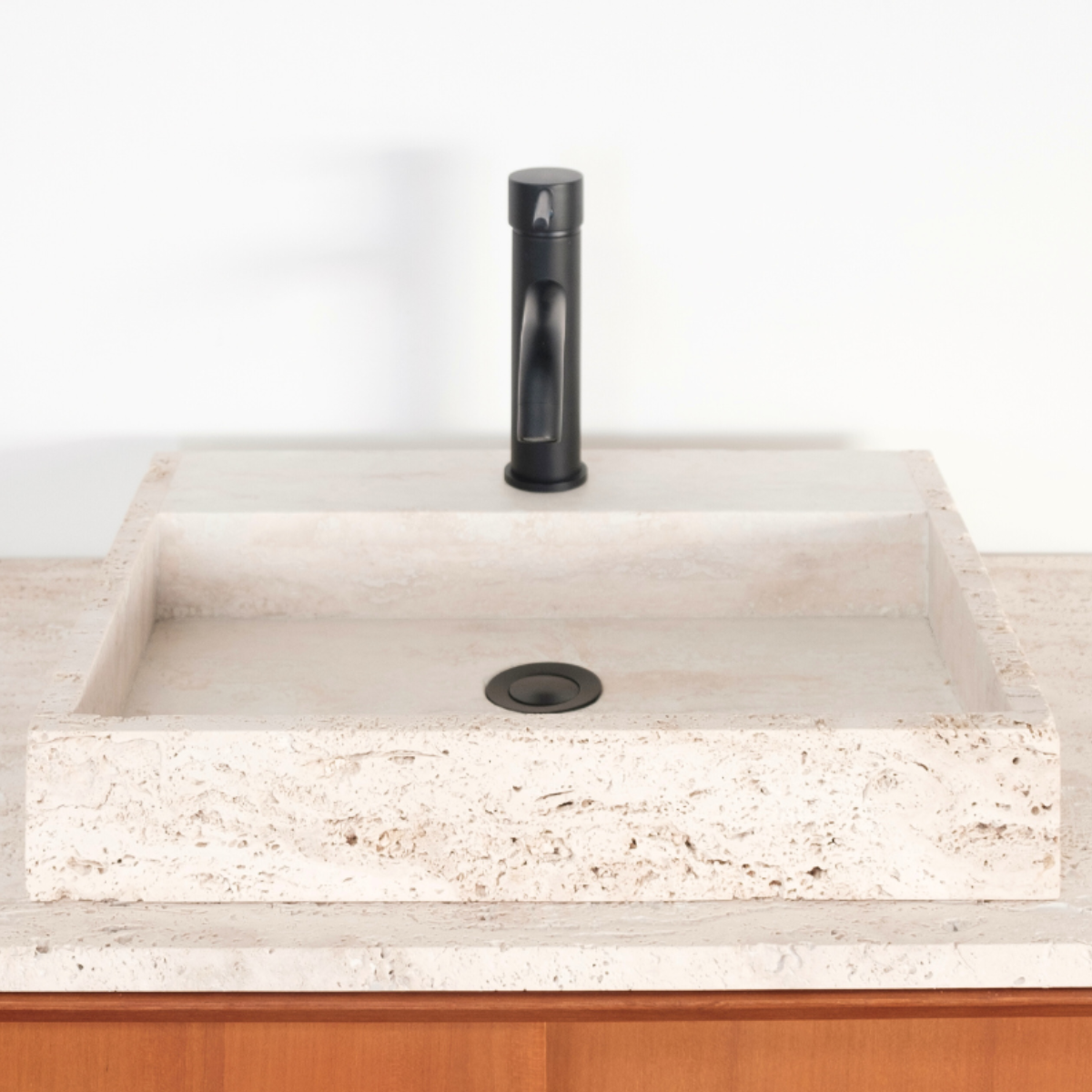 Le matériau tendance travertin se décline également en vasque ! Grâce à ce matériau naturel, vous disposez de belles nuances de couleurs uniques qui rendent chaque lavabo unique.