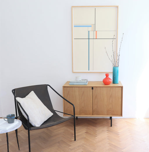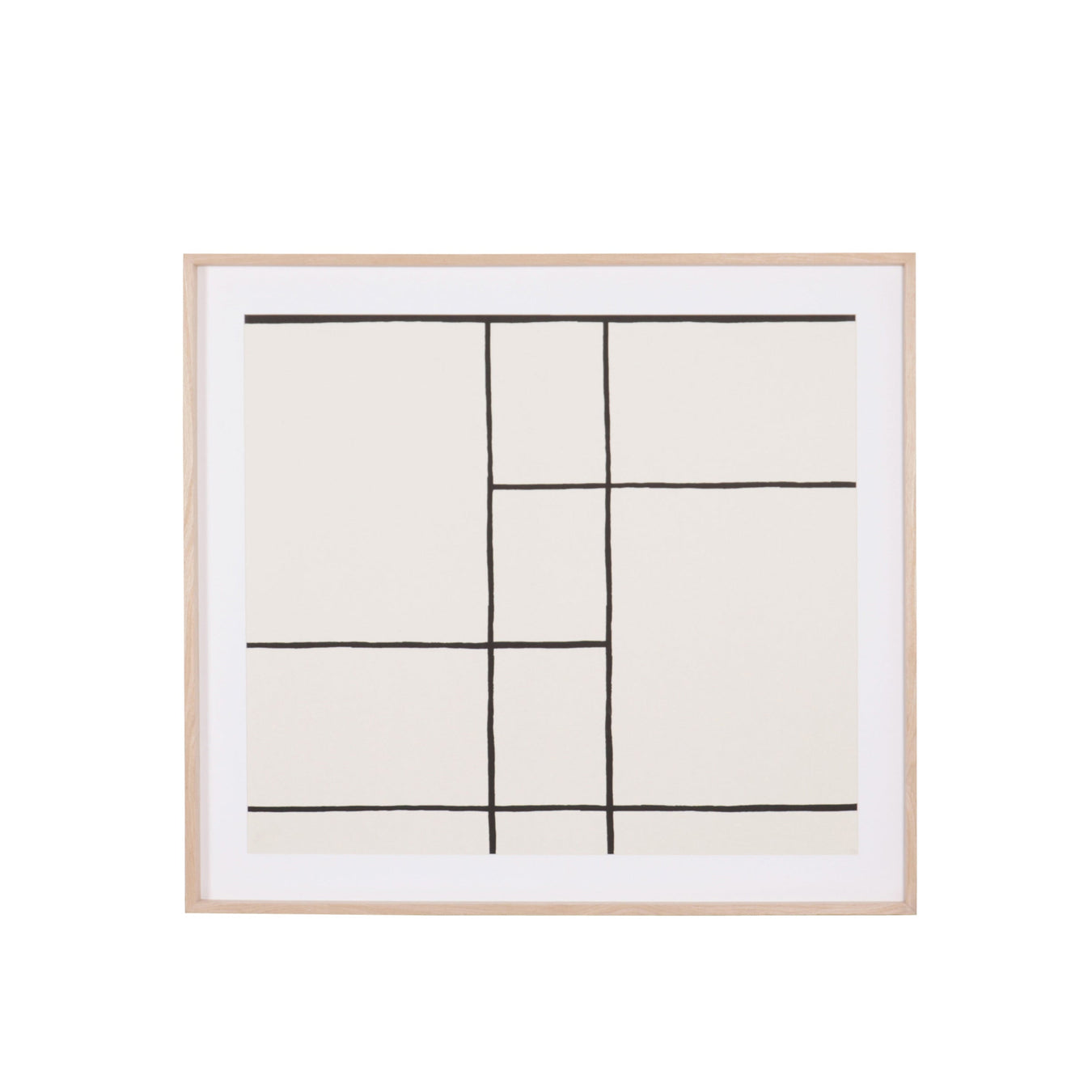 Artwork Black Grid est une œuvre d’art abstraite avec des lignes noires minimalistes et diverses surfaces de couleur naturelle. Lorsque vous regard...