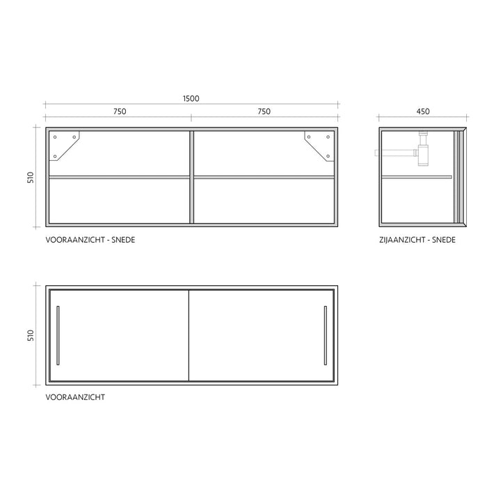 Meuble de Salle de Bain design - Vasque Marbre noir - Roseau noir (150 cm) - Nestor