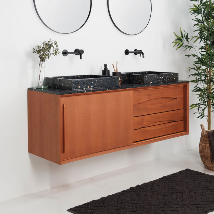 Badkamerset Bill Teak - Zwart Terrazzo bovenplaat en wasbakken - Houten poten