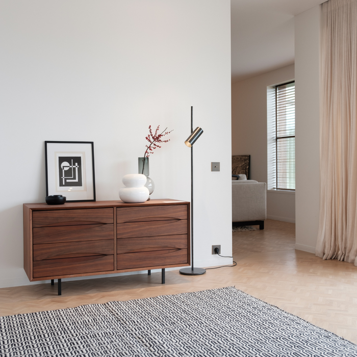 Als je op zoek bent naar een stijlvol en functioneel dressoir, is het vintage dressoir Blend de perfecte keuze. Met zijn lengte van 120 cm biedt het Blend Dressoir voldoende opbergruimte voor al je spullen met zijn 8 schuiven. Of het nu gaat om het opbergen van serviesgoed, boeken, kleding of andere persoonlijke bezittingen, dit dressoir is praktisch en functioneel.