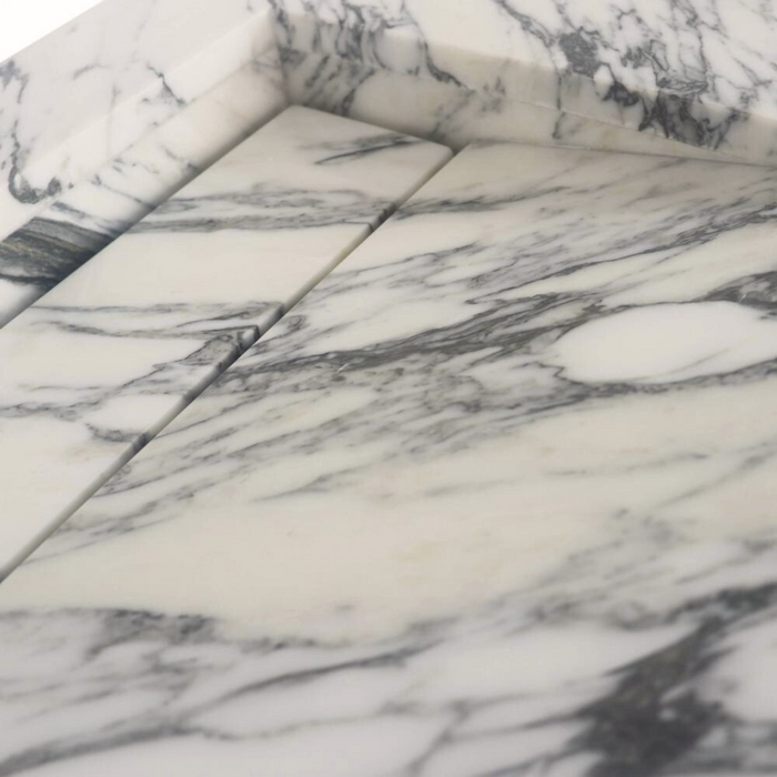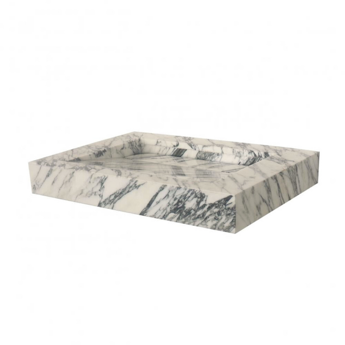 Eenvoudig maar toch enorm stijlvol: de Remy wastafel in wit marmer met blauwe tekening!