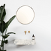 Deze wastafel hangt zwevend aan de muur met een metalen onderstel dat niet meer zichtbaar is na het ophangen.