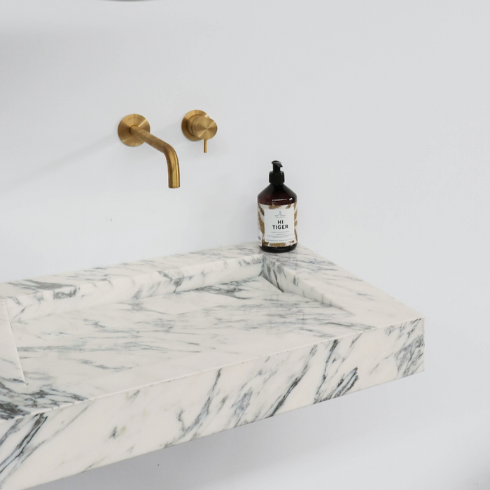Het marmer dat gebruikt wordt in de wastafels is blauw generfd marmer. Meer weten over het onderhoud van marmer? Lees het op onze blog.